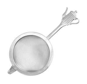 Stainless steel fine mesh tea strainer with kettle embossed on handle